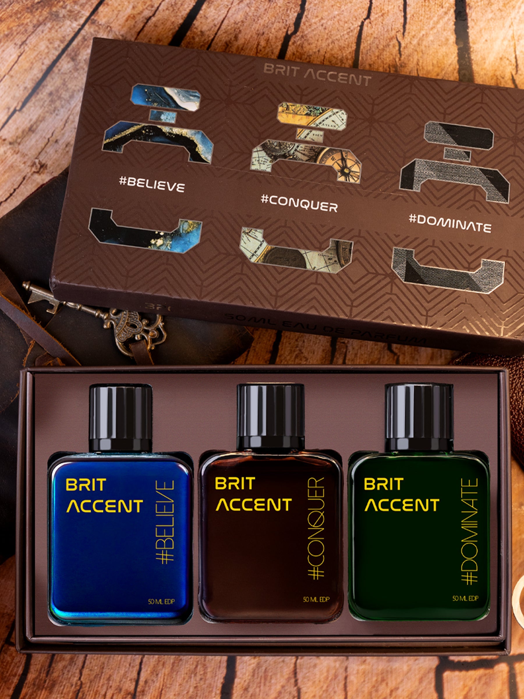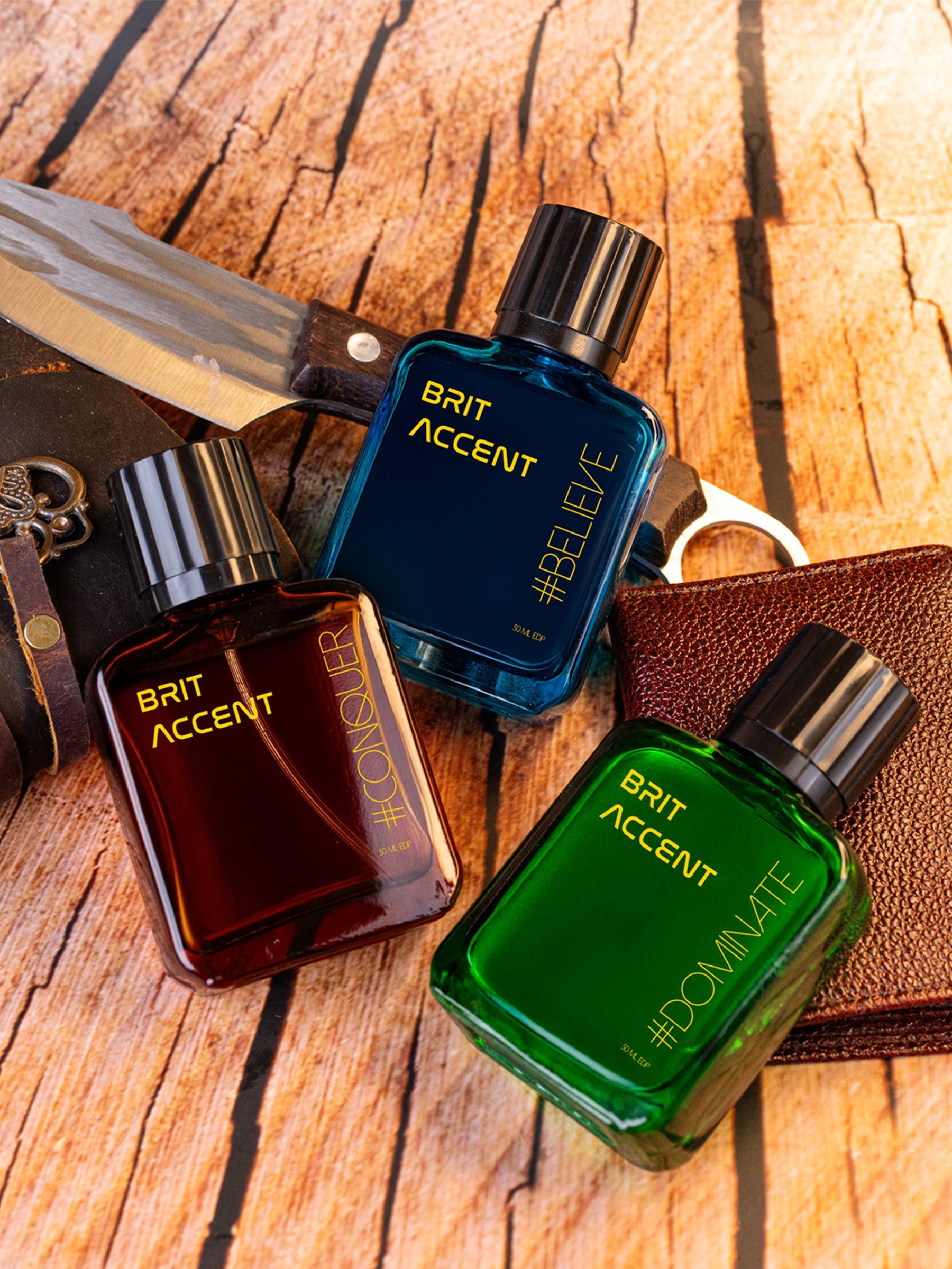 A Scent for Every Mood: Discover the perfect fragrance for any occasion with our Premium Perfume Gift Set. This collection features three distinct scents: Believe, Conquer, and Dominate. Each perfume is carefully crafted to complement different moods and situations, ensuring you always have the right scent at your fingertips.